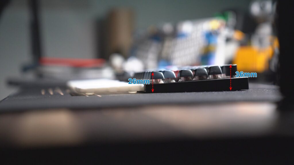 키캡을 포함한 키크론 Q11의 높이는 대략적으로 36mm ~ 26mm 정도 입니다.